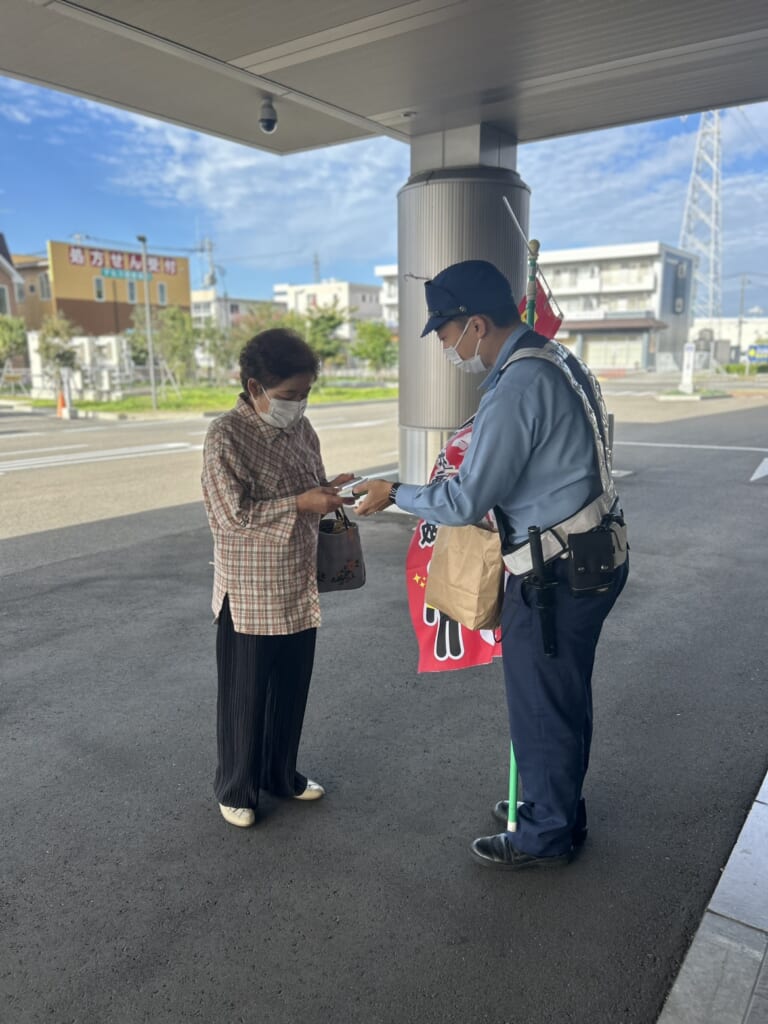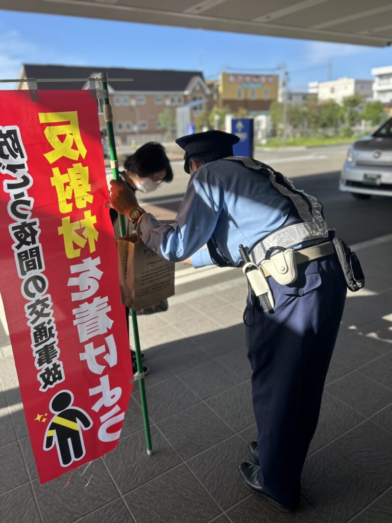10月9日、〈岩手〉北上済生会病院の正面玄関付近で北上警察署交通課の警察官3人による交通安全呼びかけ活動が行なわれました。