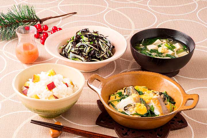 「こんな日はどんな食事がいいのだろう…」。「こんな日」というシチュエーションを想定して現実的な1日を想定した朝食・昼食・夕食の3メニューを栄養管理部門のスタッフが紹介します。もちろん、栄養は満点でおまけにヘルシー。エネルギーを500kcal以下にする「軽カロ」と、塩分を2g以下にする「減塩」のポイントも紹介します。このレシピを活用して、「こんな日」にあった食事を作ってみませんか?