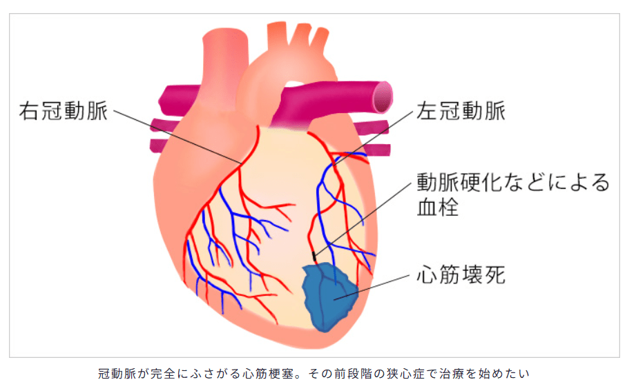 心筋梗塞は致命的な疾患であり、前段階の狭心症の状態で発見し、治療を始めることが重要です。