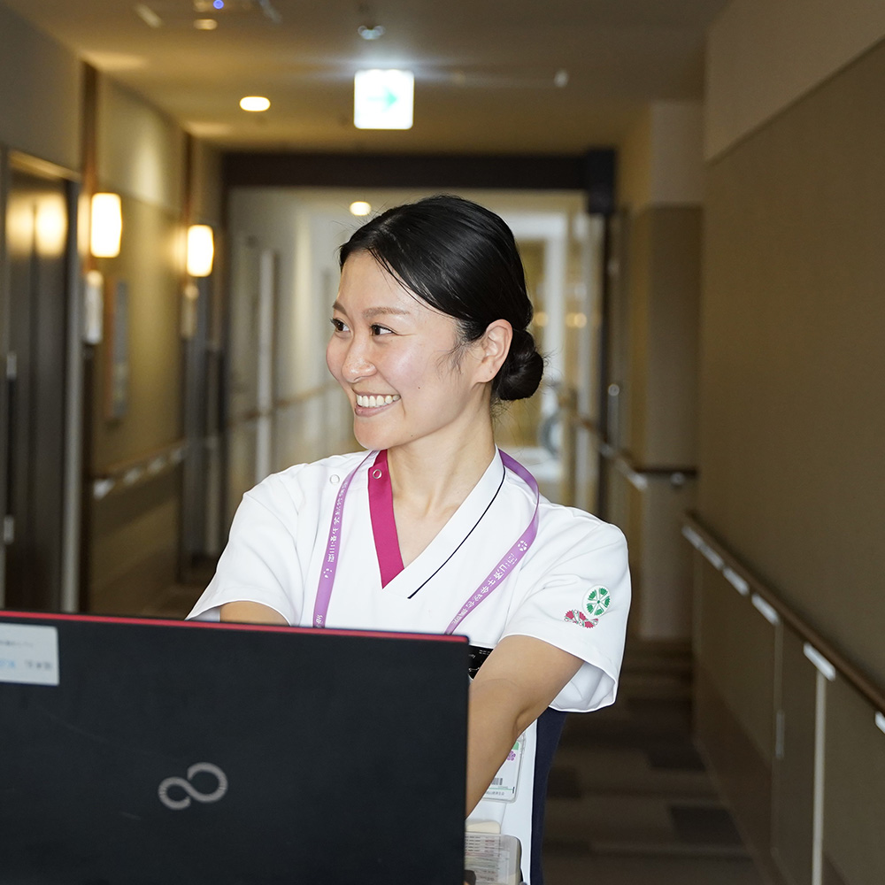 私が看護師を志したきっかけは、義父が肺癌を患い当院で過ごした経験です。入院から退院、そして看取りまで主治医の励ましや看護師さんの素早い対応、家族への温かな気遣いに深い感動を覚え、「私も看護師になりたい」と思いました。実際に働く中で、食後に手をきれいに拭くことが難しくなった患者さんが、涙ながらに「ありがとう」と声をかけてくださった瞬間、細やかなケアの大切さと看護の本質を実感しました。多忙な急性期病棟でも、私は「思いやりをもって一人ひとりを大切にした看護」を大切にし、患者さん一人ひとりの生活に寄り添うケアを心掛けています。
