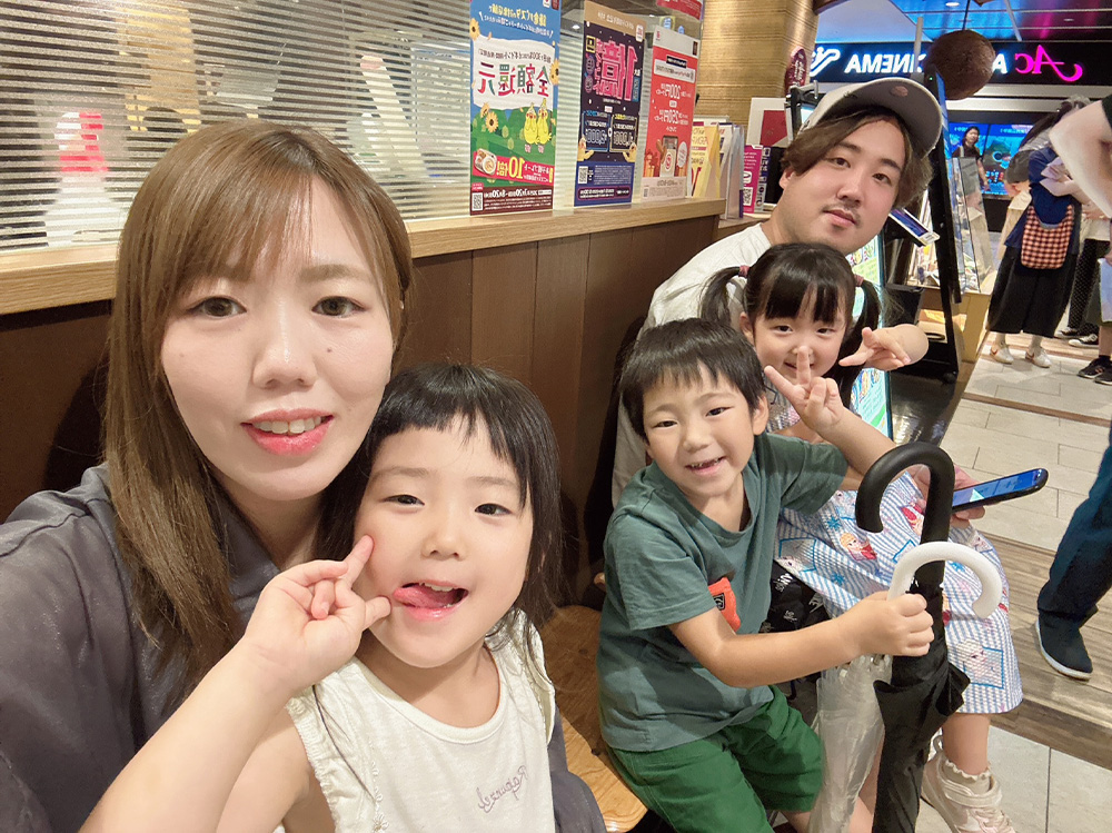 仕事で大変なことがあっても、3人の子どもたちの学校や保育園での話を聞くことで元気をもらっています。休日は家族で公園や日帰りのお出かけを楽しんでいます。映画を観てリフレッシュする時間も大切にしています。家族の笑顔が仕事を頑張るエネルギーになっています!