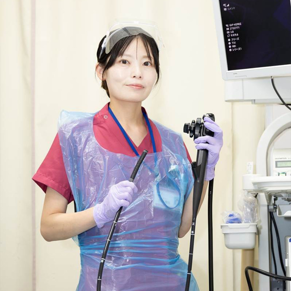 私は小学2年生の息子と1歳10か月の娘を育てながら、時短勤務で内視鏡室に勤務しています。当院は子育て中の看護師にもとても理解が深い職場です。子どもが急に体調を崩したときも、職場の同僚や上司の温かいサポートを受けながら、安心して休暇を取ることができます。この柔軟な環境があるからこそ、家庭と仕事を無理なく両立し、自身のキャリアも着実に積み重ねることができています。今は内視鏡技師試験への挑戦を決意し、子育て中でも専門性を高めたいという思いを持ち続けています。子育て中だからこそ、キャリアアップを諦めず、学び続ける姿勢を大切にしていきたい。内視鏡技師試験への挑戦はその一歩です。