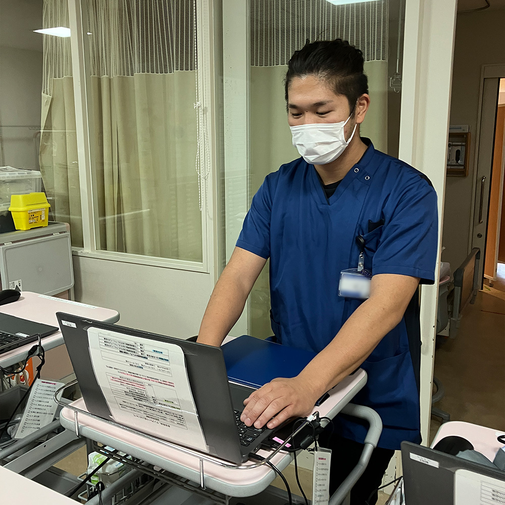 慢性期看護の魅力は、患者さん一人ひとりの生活背景や長期的な目標にしっかり寄り添い、時間をかけて関われることにあります。急性期とは違い、日々の小さな変化を丁寧に捉え、生活機能の維持・向上に取り組むことが大切です。私は温かみのある環境の中で信頼関係を築き、退院後の生活まで見据えた継続的なケアを大切にしています。