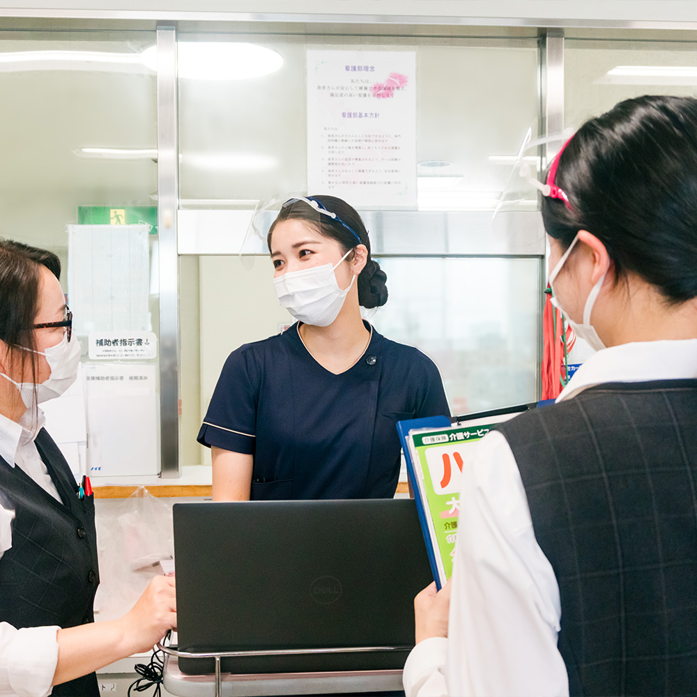 私は患者さんの声に耳を傾け、一人ひとりの願いや背景に寄り添うケアを大切にしています。そこで、地域に根ざし二次救急で幅広い対応を行なう済生会泉尾病院に魅力を感じ転職しました。実際に働いて感じたのは、医師・看護師・医療技術スタッフが職種の枠を越えて密に連携し、患者さんが望む場所へ退院できるよう同じ目標に向かって支えあっていることです。スタッフ同士が日頃からしっかりと対話を重ねる環境こそが、患者さんの希望を形にする看護につながっていると日々実感しています。