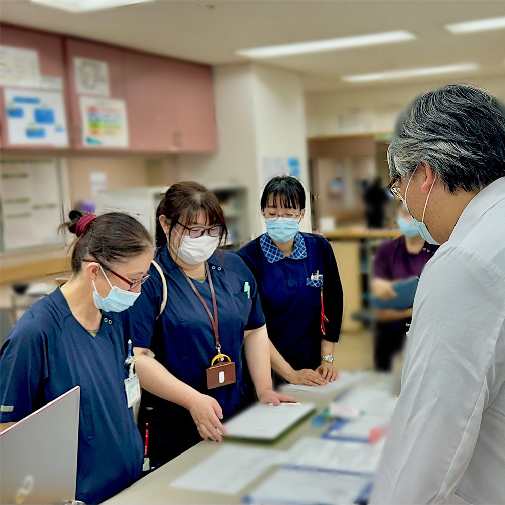 私が認知症看護を志したのは、内科病棟で入院をきっかけに心身ともに混乱する患者さんと多く接した経験からです。一人ひとりの行動や言葉の背景には、その方だけの生活や思いがあり、それを汲み取ることは容易ではありません。しかし、不安や戸惑いを抱える患者さんに寄り添い、安心できる環境を整えることこそが看護師の役割だと考えています。外来でも入院でも、患者さんの表情がぱっと明るくなる瞬間に立ち会えることが何よりの喜びです。また地域包括支援センターや多職種と連携し、住み慣れた地域で穏やかに暮らし続けられる仕組みづくりにも力を注いでいます。