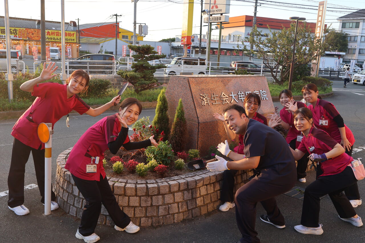 10月24日、総合玄関前の花壇の植え替えを行ないました。植え替えをしたのは、〈福岡〉大牟田病院のお花好きが集結した「済生会大牟田病院園芸部」!