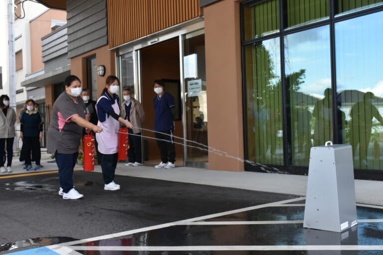 浦﨑弘之施設長は「あえてぶっつけ本番で訓練することで、何が必要か、どうすれば負担が少なく済むかが分かると思いトライしました。皆汗まみれで頑張ってくれました」と話していました。