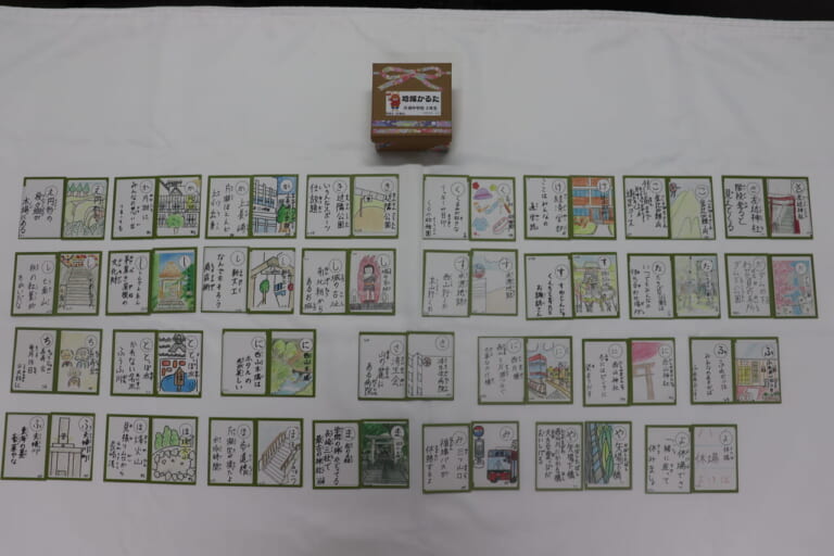 かるたの箱の装飾も手作り。一つひとつに、生徒の皆さんの思いと地域への愛が詰まった素敵(すてき)な作品です。本当にありがとうございました!