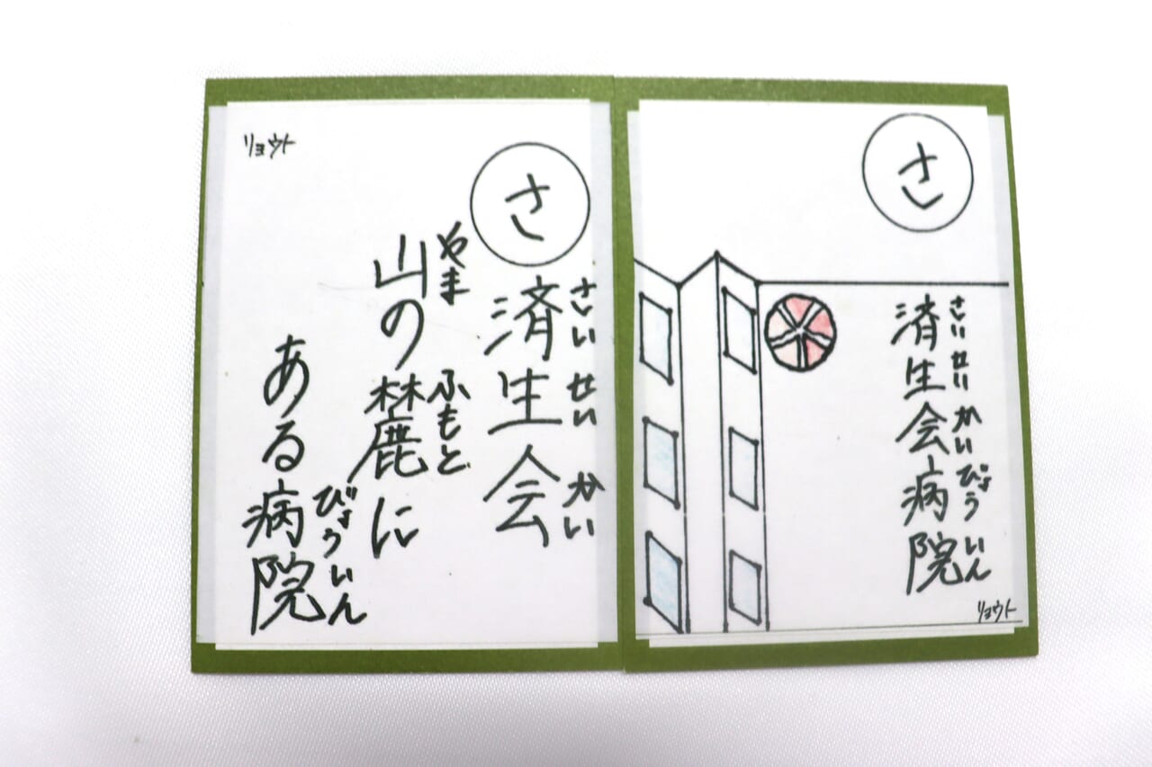 なんと、その中に長崎病院も! 当院を入れてくれた理由を聞いたところ、「親しみ深い場所だから」「災害拠点病院で、安心できる場所だから」「済生会は心の安心材料」と話してくれました。かるた作りの当初から「病院に持って行きたい」と声が上がっていたと聞き、職員一同とてもうれしく感じています。