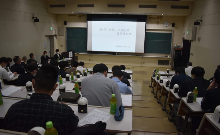 12月11日に第5回和歌山市消防局・症例検討会を開催し、和歌山市消防局から45人、和歌山病院から21人の総勢66人が参加しました。