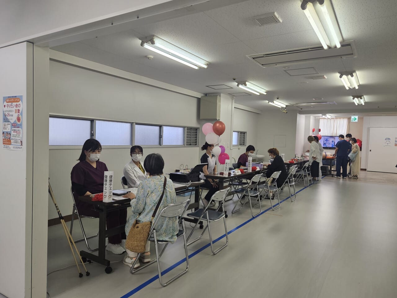 9月26日、世界中の人々が心臓の健康を大切にする「世界ハートデー」のイベントを山口総合病院で初開催しました。循環器内科医と心不全療養指導士が中心となり、心不全指導や健康チェック、ポスター展示を行ない、地域住民や入院患者さんなど約120人が参加しました。